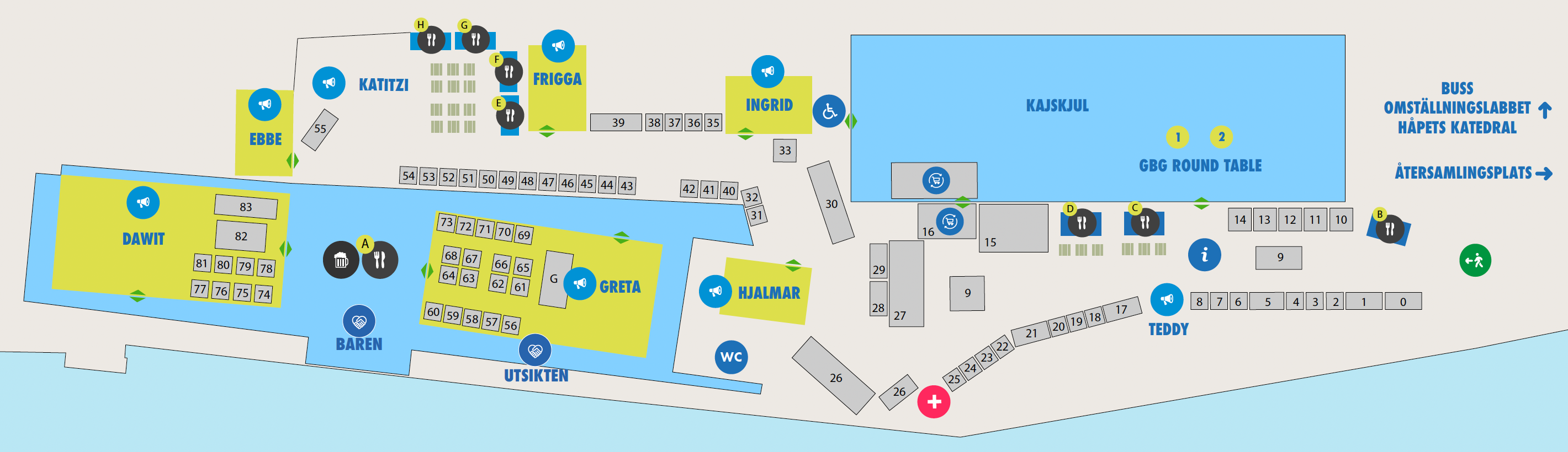 Här kan du se kartan över evenemangsområdet som tar form allt efter som arrangörer och partners bokar in sig.