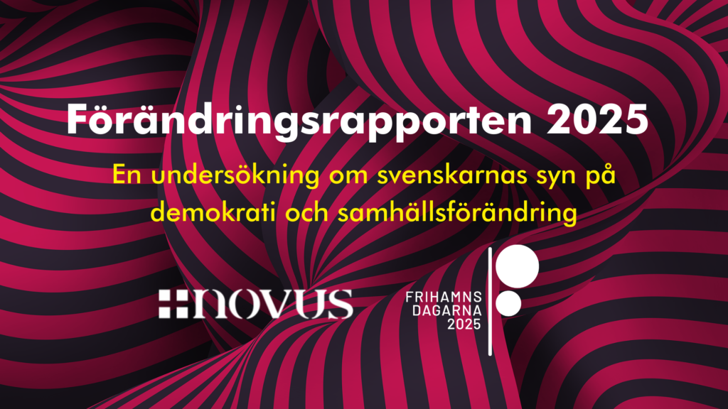 I ett världsläge mer oroligt än på länge ställs frågan om demokrati på sin spets. Men svenskarna är eniga: I princip alla (95 %) tycker att demokrati är viktigt. Samtidigt pekar mycket på att samhällsklimatet just nu präglas starkt av polarisering. Fyra av tio (39 %) svenskar är rädda för att uttrycka sina åsikter om samhället och drygt fem av tio (55 %) tror inte att personer som röstar olika kan förstå varandras perspektiv. Det visar Förändringsrapporten 2025 där Novus, på uppdrag av Frihamnsdagarna, för andra året i rad undersökt svenska folkets syn på samhällsutveckling, demokrati och påverkan.